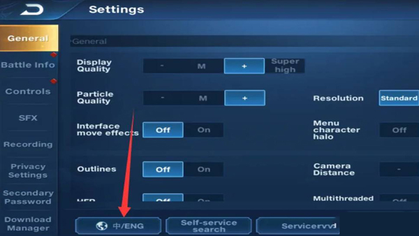 打开王者荣耀国际服,进入游戏后,点击右上角的齿轮图标以打开设置界面。