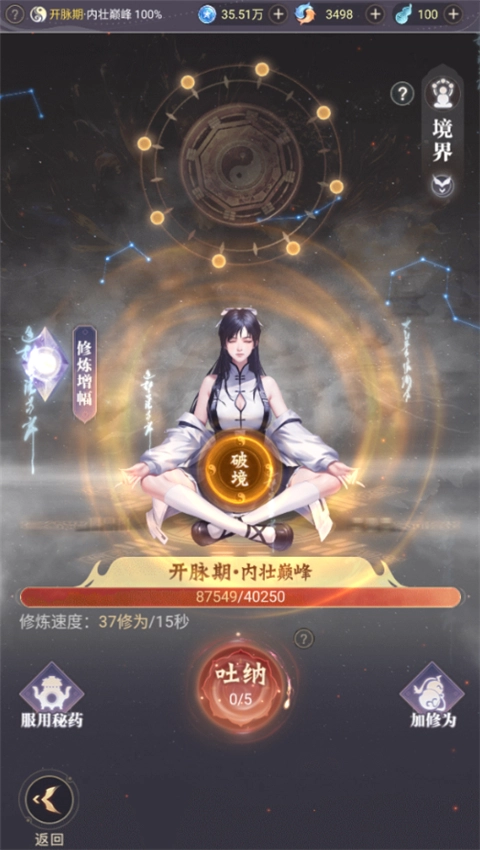 在修仙题材游戏里,境界的提升向来是核心玩法。《大武道》中,玩家获取经验的主要途径为挂机修炼与丹药炼制,而挂机修炼的效率则可通过升级灵气池、精进功法以及培养宝具等方式来提升。