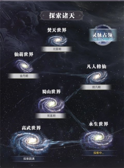 当玩家等级达到特定阶段时,会解锁“探索诸天”功能。解锁后,玩家能够在诸天世界里自由探索,通过采集资源或参与战斗来获取收益,同时还有机会遇到各类奇闻异事。