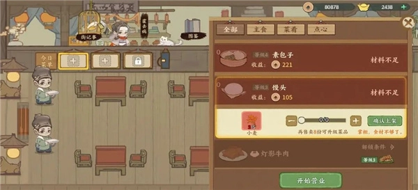 当解锁两个上菜位后,即可组合成套餐(需注意将菜品摆放齐全后再点击开始营业)。套餐内的菜品数量并无限制,举例来说,五谷丰登套餐即便搭配10份米饭与1个馒头,也能享受50%的加成。