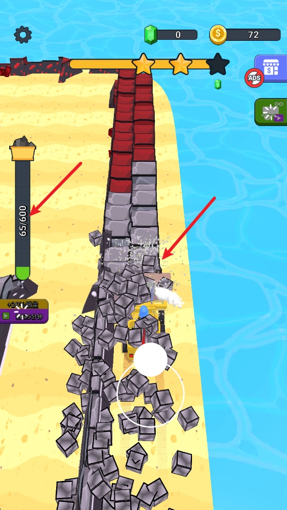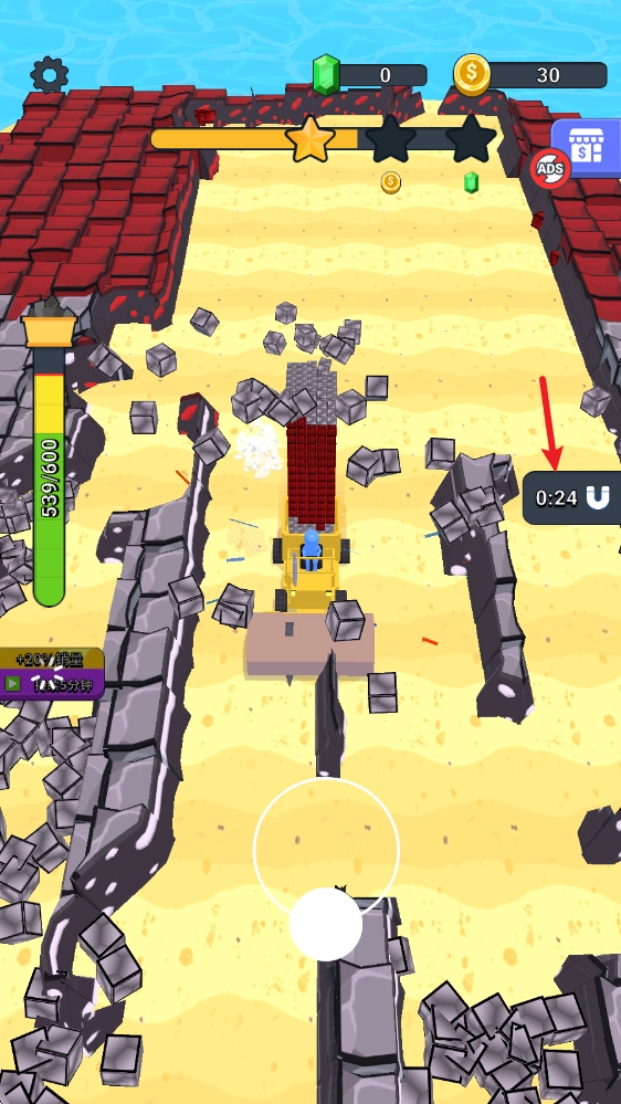 进入游戏后,我们拖动屏幕即可控制挖掘机进行移动。