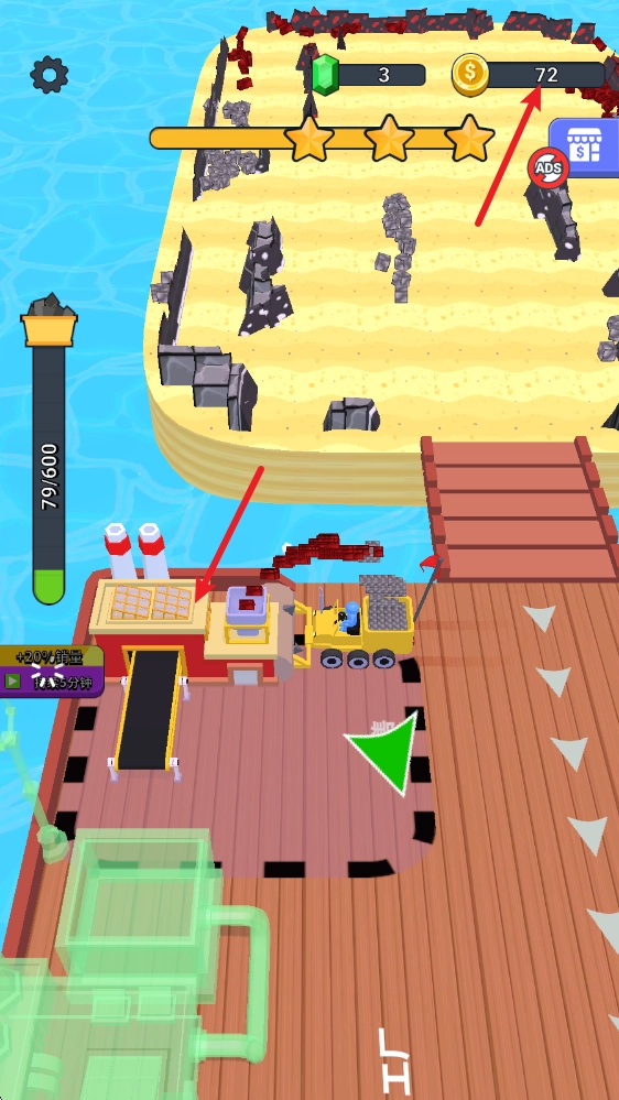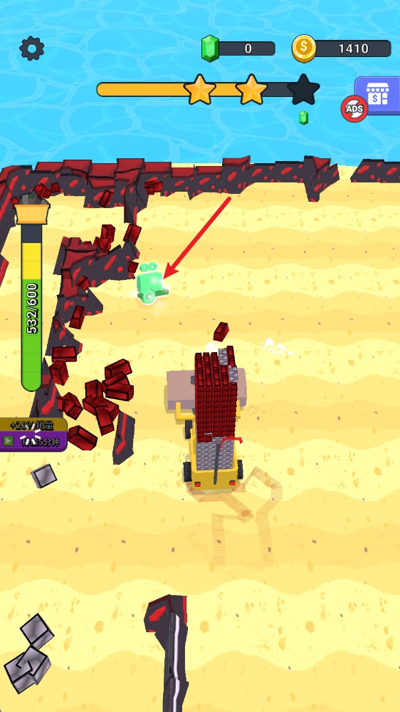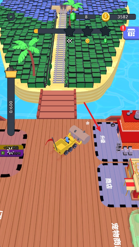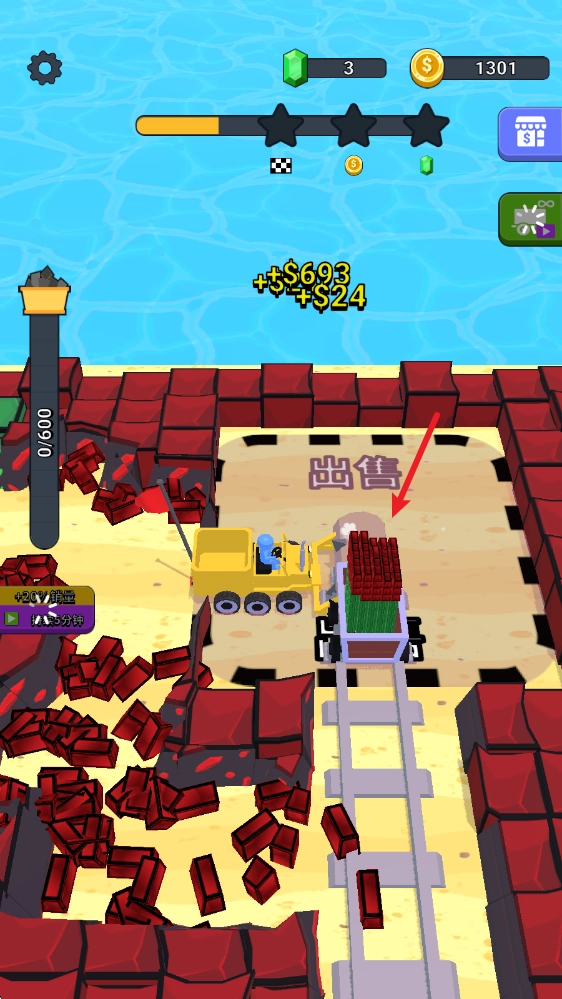 进入第二关后,矿车功能便会解锁,它可以协助你将物资运输到基地进行售卖。