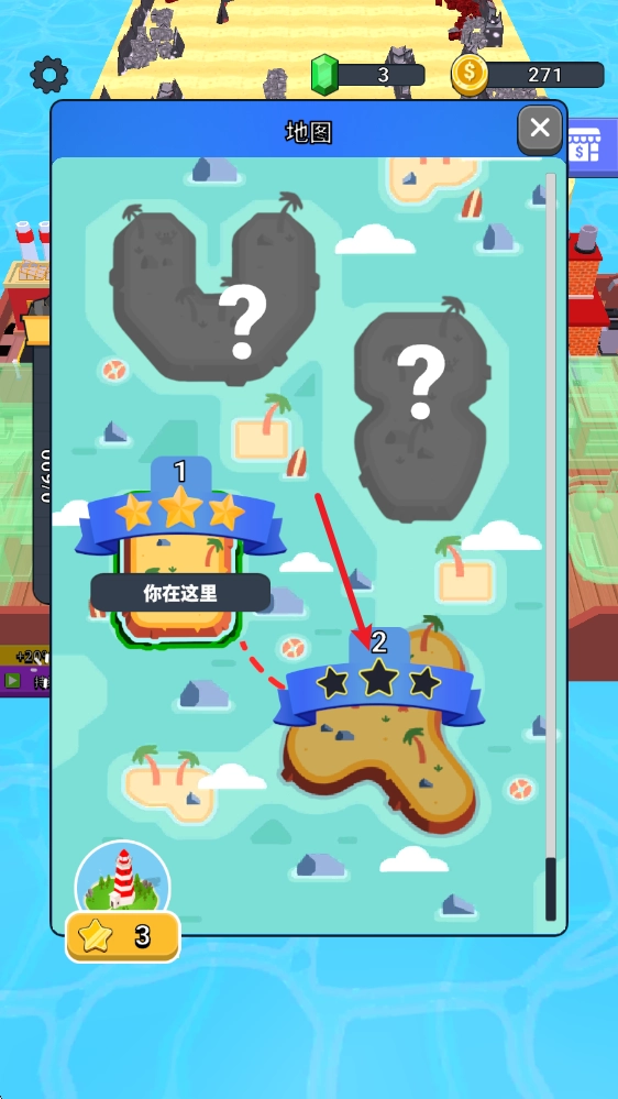 游戏界面上方会显示每一关的进度情况,当进度达到一颗星时,就能解锁下一关;若达成满星,则意味着这一关完美通过。
