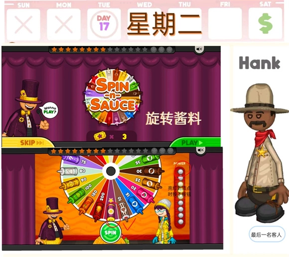 旋转酱料:亮灯到顶点时按下按钮