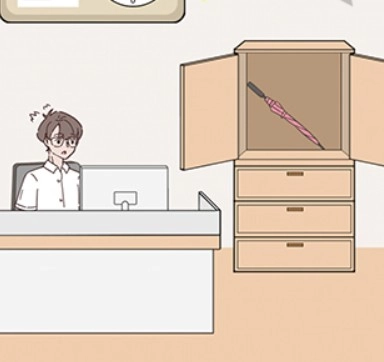 切换到左边场景,打开柜子拿到雨伞。