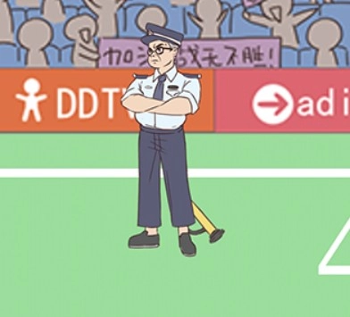 向左走到保安脚边拿打气筒,再返回给球充气,长按足球,等进度条走完