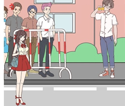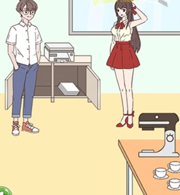 点击点表,再点击椅子靠背上的围巾,接着点击文件夹,把围巾和文件夹递给女神,然后前往右边点击男主角。