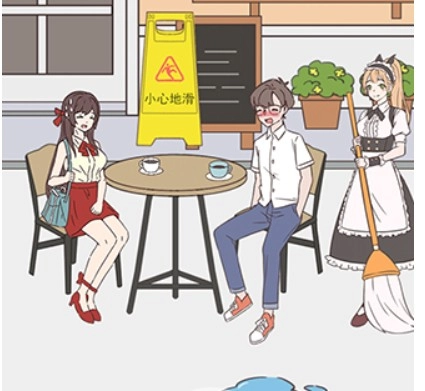 点击女仆离开后拿到后面的小心地滑牌子。