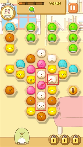 在消除关卡里,建议优先移动相同类型的角色块(比如【白色小熊】)来达成连线,这样能更高效地积累分数。