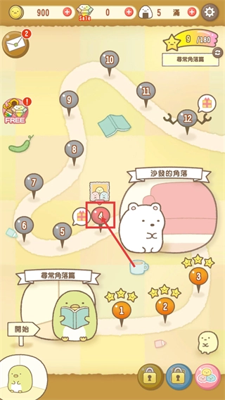 完成关卡后回到地图界面,标红的新节点会解锁新的探索区域(例如【沙发的角落】),这样就能继续推进探索进度了。