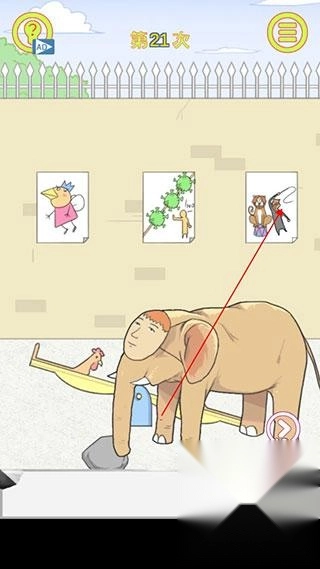 第三部,最后从墙上第三幅画里拿到鞭子,把鞭子放到大象身上,大象就会跳到跷跷板上,日记就会被弹出去。