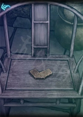 回到初始场景,用刚才拿到的梅花镶嵌物对准门锁使用,触发剧情后,调查椅子就能推进后续剧情了。