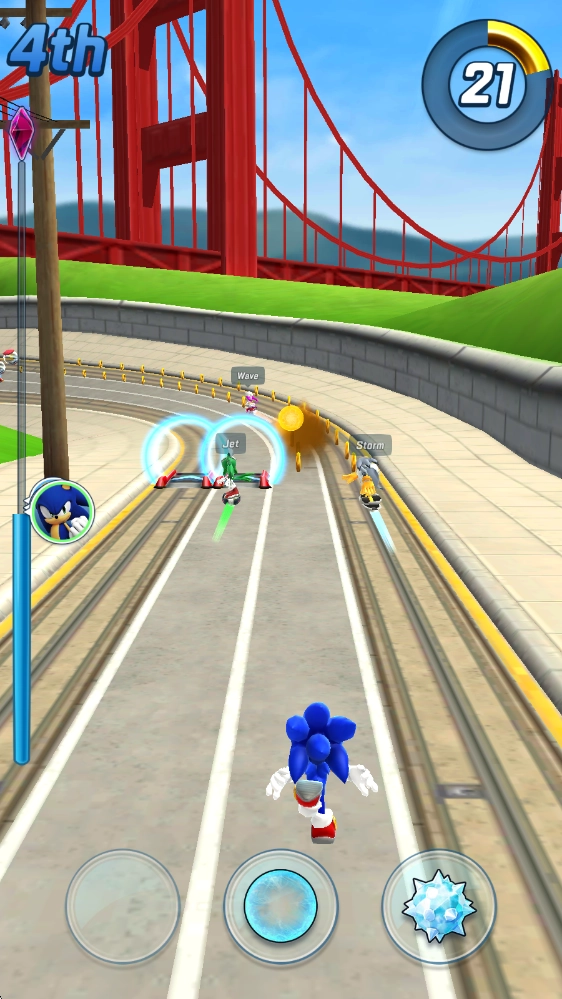 索尼克力量,又名索尼克力量速度之战,英文全称是Sonic Forces:PvP Battle Race,这是SEGA推出的索尼克同人跑酷游戏。在游戏里,玩家能够操控自己的索尼克参与紧张刺激的跑酷挑战,跟随索尼克的视角穿梭于各式各样的丰富场景之中。我们可以通过跳跃或翻滚的方式躲避障碍,还能拾取各类道具来强化自身,或是阻击对手,助力自己率先冲过终点,赢得胜利!