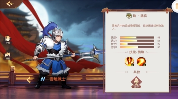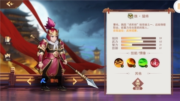 开局按照新手指引操作,能获取两名紫色品质武将——前排的李典与兼具治疗和法术能力的蔡文姬,另外还有一名蓝色品质的跟班武将。凭借这三位武将,应对开局阶段的小怪完全不在话下。