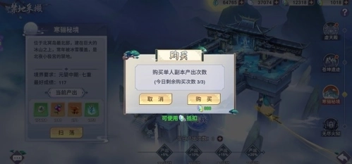 禁地采撷部分用于重置挑战次数或是结算奖励翻倍。