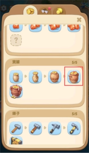 当宝罐达到四级后就有概率从宝罐中产出宝石
