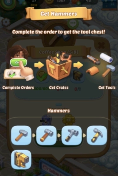 小镇的重建进程以任务为核心驱动力:玩家需要承接各类重建订单,比如修复镇上的咖啡馆、扩建沿海的步行栈道等;接着根据订单的具体要求,合成对应的物品——像完成咖啡馆订单就需要制作5个咖啡杯;每完成一项任务,都能获取金币、经验值以及建筑材料,这些奖励将助力小镇不断拓展新的区域。