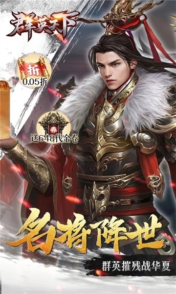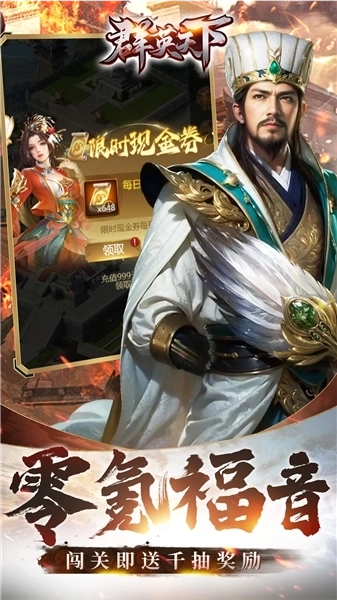 后缀福利说明:登录送吕布赵云,首充0.03元得V15,每日领648元,通关送千抽!