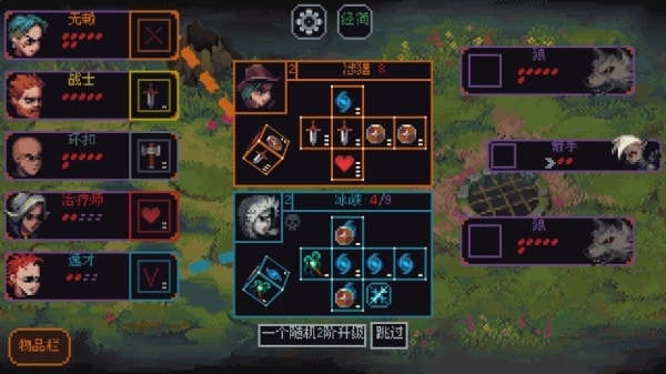 每击败一轮敌人,就能解锁角色升级或技能升级等功能选项,点击即可进行选择;