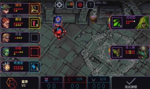 根据掷出的骰子技能点击进行安放(若骰子掷出的是空面,可点击重掷,每回合有两次重掷机会);