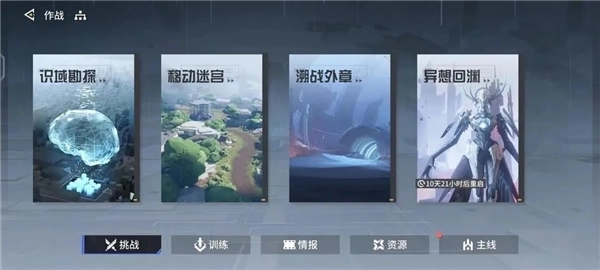游戏现有四种作战模式,如识域勘探、移动迷宫等;