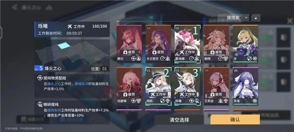 选择要上场的角色就会显示【工作中】;