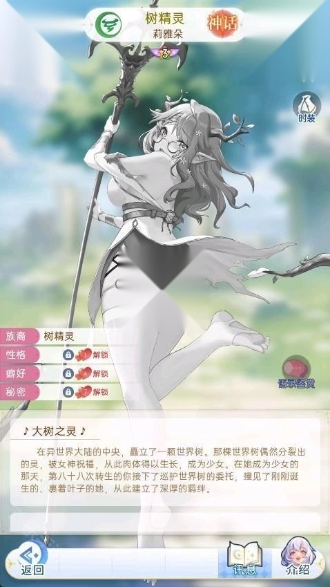 在异世界大陆的中央,矗立着一棵世界树。这棵世界树偶然分裂出的灵,受到女神的祝福后,肉体开始生长,最终化作一位少女。就在她化身为少女的那一天,经历了第八十八次转生的你,接下了巡护世界树的委托,恰好遇见了刚诞生、身上裹着叶子的她,从此你们之间建立起了深厚的羁绊。