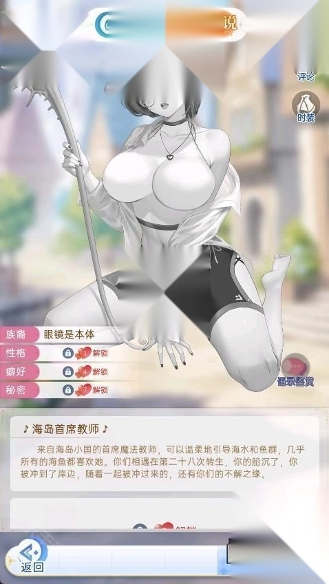 来自海岛小国的首席魔法教师,能温柔地引导海水与鱼群,几乎所有海鱼都对她心生喜爱。你们的相遇发生在第二十八次转生之际——那时你的船不幸沉没,你被海浪冲到岸边,而一段不解之缘也随你一同被卷上了这片海岸。