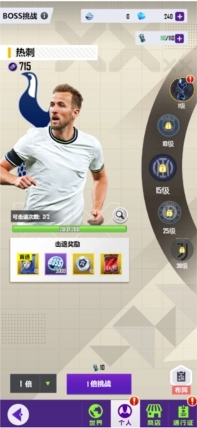 各位经理人能够随时随地开启征程挑战,完成挑战后可获得金币、升级币和球队经验等实用奖励。关卡难度越高,对应的奖励也会越丰厚!另外在界面右上角,每个章节只要达成指定的闯关进度,就能额外领取奖励。