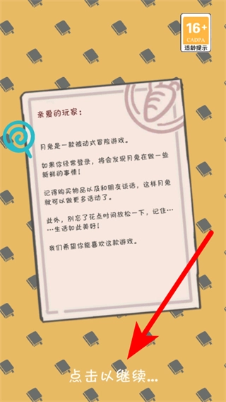 首先点击“点击以继续...”按钮,确认游戏介绍提示后,即可进入游戏主流程。