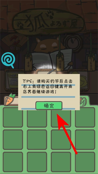 查看商店提示后点击确定按钮,之后就能按照提示购买物品,购买完成后可以通过返回键退出商店界面。