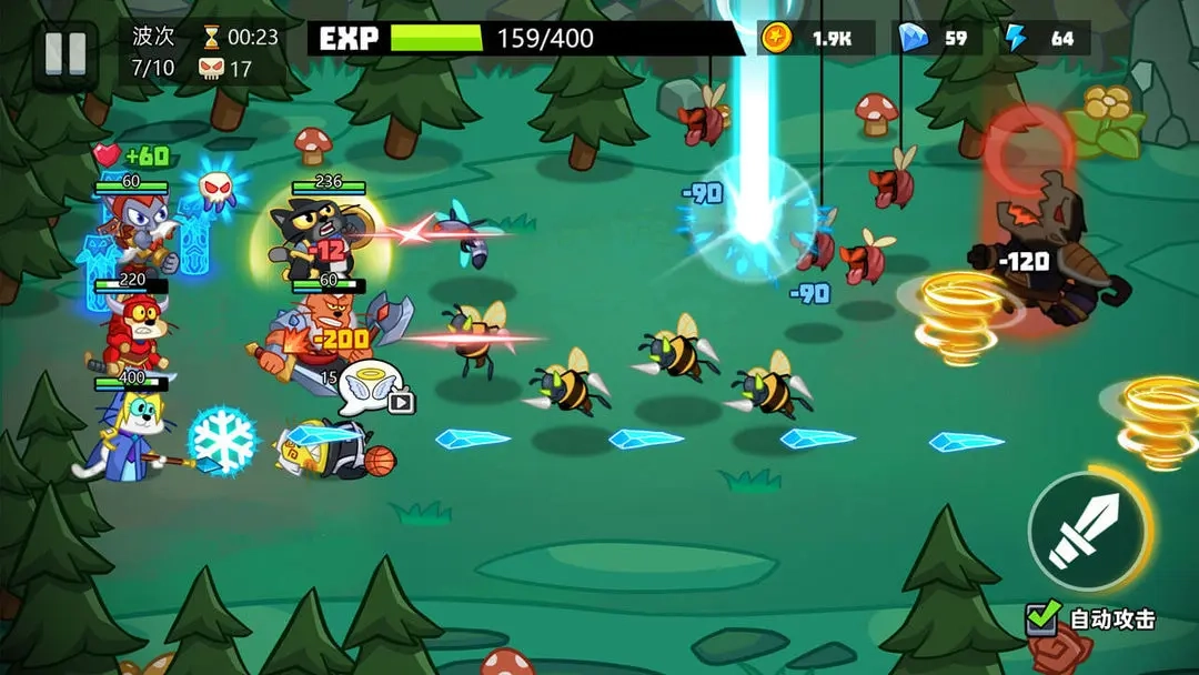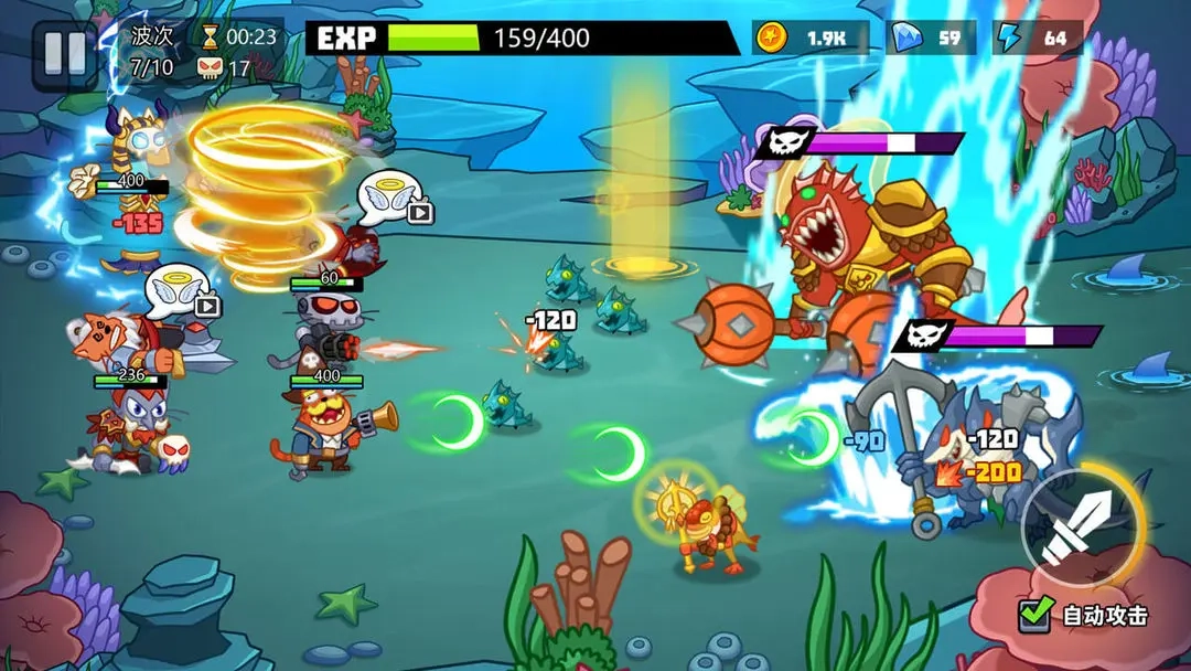 丰富的技能系统:超过200个天赋技能和稀有装备,玩家可以通过探索和战斗获得这些技能和装备,为猫咪英雄打造强大的战斗力。