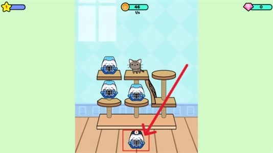 盯着屏幕下方猫笼旁边的倒计时,等数字一归零,“叮咚”一声,一只全新的猫咪就出现啦。