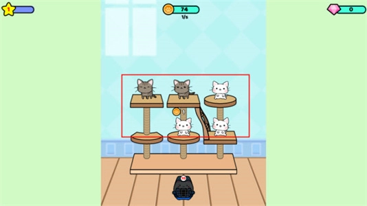 《快乐撸猫》是一款十分有趣的模拟养成游戏,在游戏的消除界面里,玩家能看到各式各样软萌可爱的小猫咪。游戏中的猫咪种类十分丰富,玩家可以将相同的小猫咪合并消除,合并后它们的等级会提升,变成更厉害的猫咪。这款游戏的核心玩法就是通过不断合成来解锁更高级别的猫咪,最终目标是收集齐所有种类的猫咪!