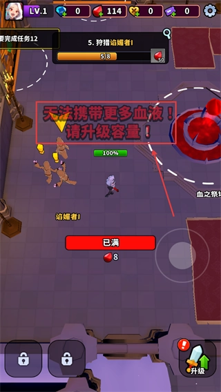 当系统提示无法携带更多血液时,要暂停当前的收集操作,进入升级界面,通过消耗血滴来提升【携带容量】,这样就能保证资源不会被浪费。