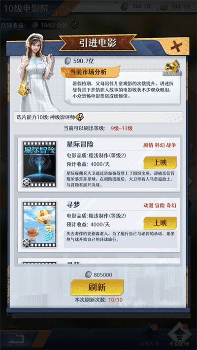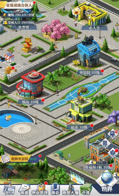 当商业建筑升级到指定等级时,就能解锁对应的全新玩法,例如【电影院】提升至5级后,便可开启【电影上映】这一玩法。