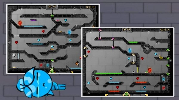 每个人都得在这儿找到线索才能接着往前走。迷宫的构造特别复杂,让蓝人和红人没办法碰到一起。
