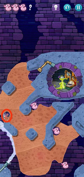 玩家需要用手指划开土壤,规划水流的路径,避开障碍物,把清水导入小鳄鱼的浴缸。