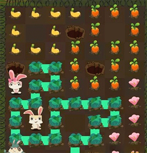 最后是小小兔来收尾,它不紧不慢地走向角落的紫茄,轻轻咬了一口,整颗果实就消失了,接着它蹦蹦跳跳地钻进洞里,整个过程十分流畅。
