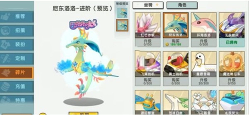 接下来就可以直接购买尼东洛洛坐骑了,需要大家集齐198个迷你币;要是想获得进阶版的豪华尼东洛洛,就得集齐300个坐骑碎片才能兑换。玩家装备这个坐骑后,不仅能提升移动速度,还带有特殊的飞行效果,不过飞行效果有一定冷却时间,所以战斗时一定要找准时机释放飞行技能。