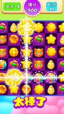 1、糖果消除,色彩靓丽,能够在规定时间内消除闯关,畅享无限精彩。
