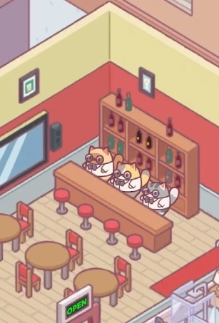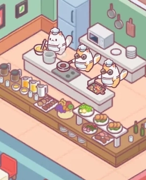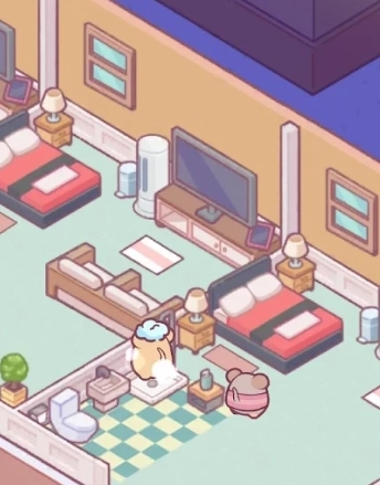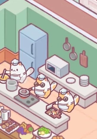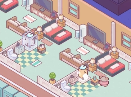 早初始阶段,玩家们需要从破败的酒店中,让仅有少数的猫咪们打扫、 修复 等等,让酒店环境看起来更好。