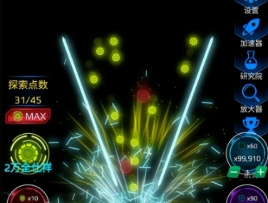 1、在宇宙中自由探索,全程可以自动发动攻击,消灭遇到的光子球,并且还可以吸收其残余的能量。