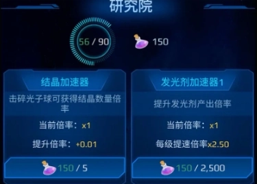 4、游戏中设有该研究院,可在此升级各类科技,如结晶加速器、发光剂加速器等,
