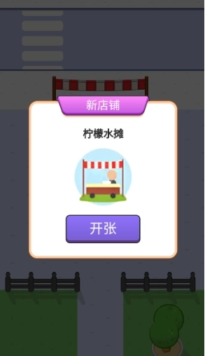 1、首先下载梦幻小吃店小游戏进入游戏,开始解锁第一家店铺,柠檬水摊