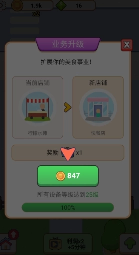 6、全部升级满级之后花费金币扩展你的业务, 建造 下一个摊位