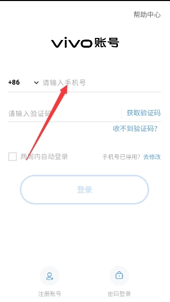 2然后登录自己的 vivo 账号就行,没有的玩家用手机号码验证码一样可以登录