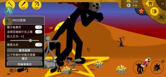 1、丰富多样的火柴人角色自由选择,每一个火柴人角色都有着独特的技能攻击手段。
