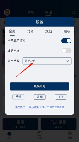 该游戏无法更改段位,如果您在注册时是为1段的的话,那只能设置从1段开始打起,无法更改为低级别的选手对棋,需要重新注册才行。但是玩家能够在平台内右下角的设置选项里,来更改显示手数,来降低或者增加游戏难度。