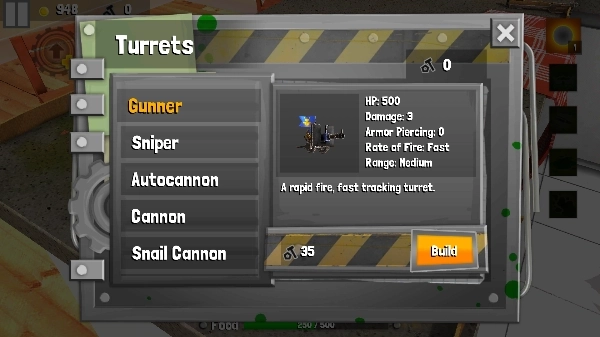 1、炮塔工事:点击进入就可以购买各种炮塔进行防御